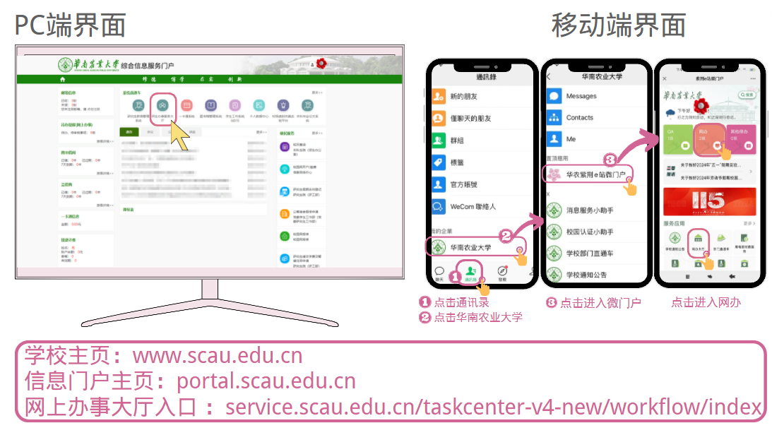 PC端-浏览器/手机端-浏览器/微信(企业号-微信通讯录进入)