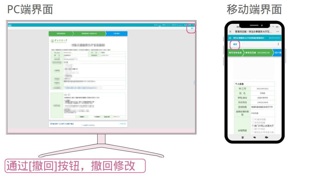 点击[撤回]按钮,可撤回到自己办理节点,进行修改补充后提交【注:当下一环节办理后,则无法撤回】