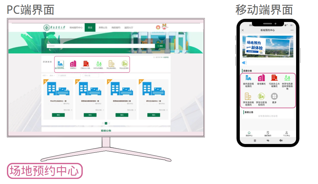 新增场地预约中心,通过梳理整合,场地预约可搜索进入办理。